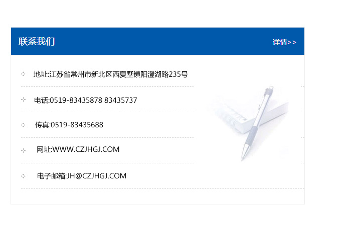 地址:常州市新北區友邦商務大廈1幢16、17層  電話:0519-85101652  傳真:0519-85112595  郵編:213022  網址:www_cz-jiayue_cn.thguilong.com  郵箱:xiajifengaa@163.com